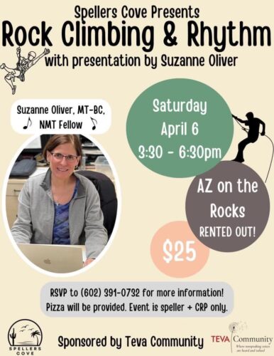 Teva Community partnered and sponsored a Spellers Cove event in Arizona! Rock climbing, group spelling, pizza and a presentation from the magnificent Suzanne Oliver of Neurologic Music Therapy Services of Arizona